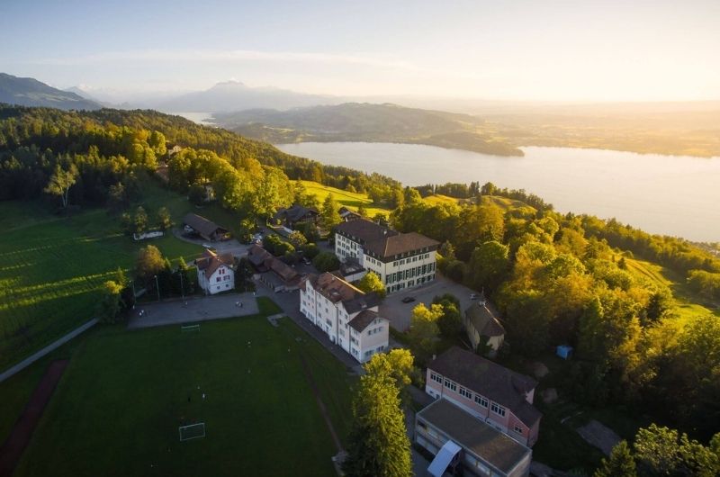 Школа відкрила свої двері в 1926 р. у будівлі колишнього готелю Grand Hotel Schonfels, розташованого на висоті 1000 м над рівнем моря між Цюрихом та Люцерною (за 45 хвилин їзди від Цюриха). Засновник школи Dr. Max Husmann так визначив головні принципи її освітньої діяльності: індивідуальний розвиток кожної дитини, створення умов для успішної взаємодії дітей різних культур та національностей, виховання освічених молодих людей в атмосфері поваги до старших. Потрібно зауважити, що Директор знає всіх учнів в обличчя, а у школі панує хороша, довірча атмосфера.