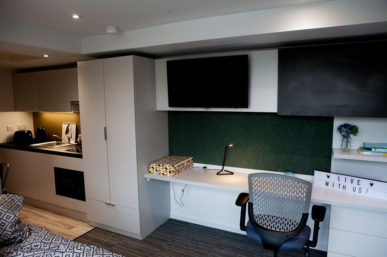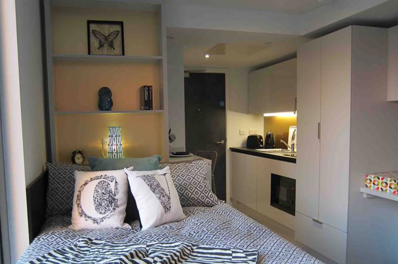 • Одномісні студії з ванною кімнатою та кухонною зоною;