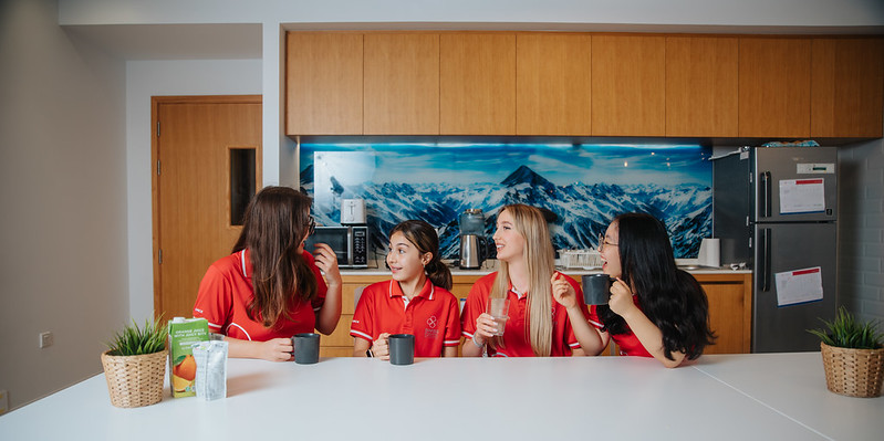 Для зручності дітей на кожному поверсі пансіону є власна кухня, тому студенти можуть готувати закуски, напої. У вихідні дні студенти-бордери насолоджуються пізнім сніданком.